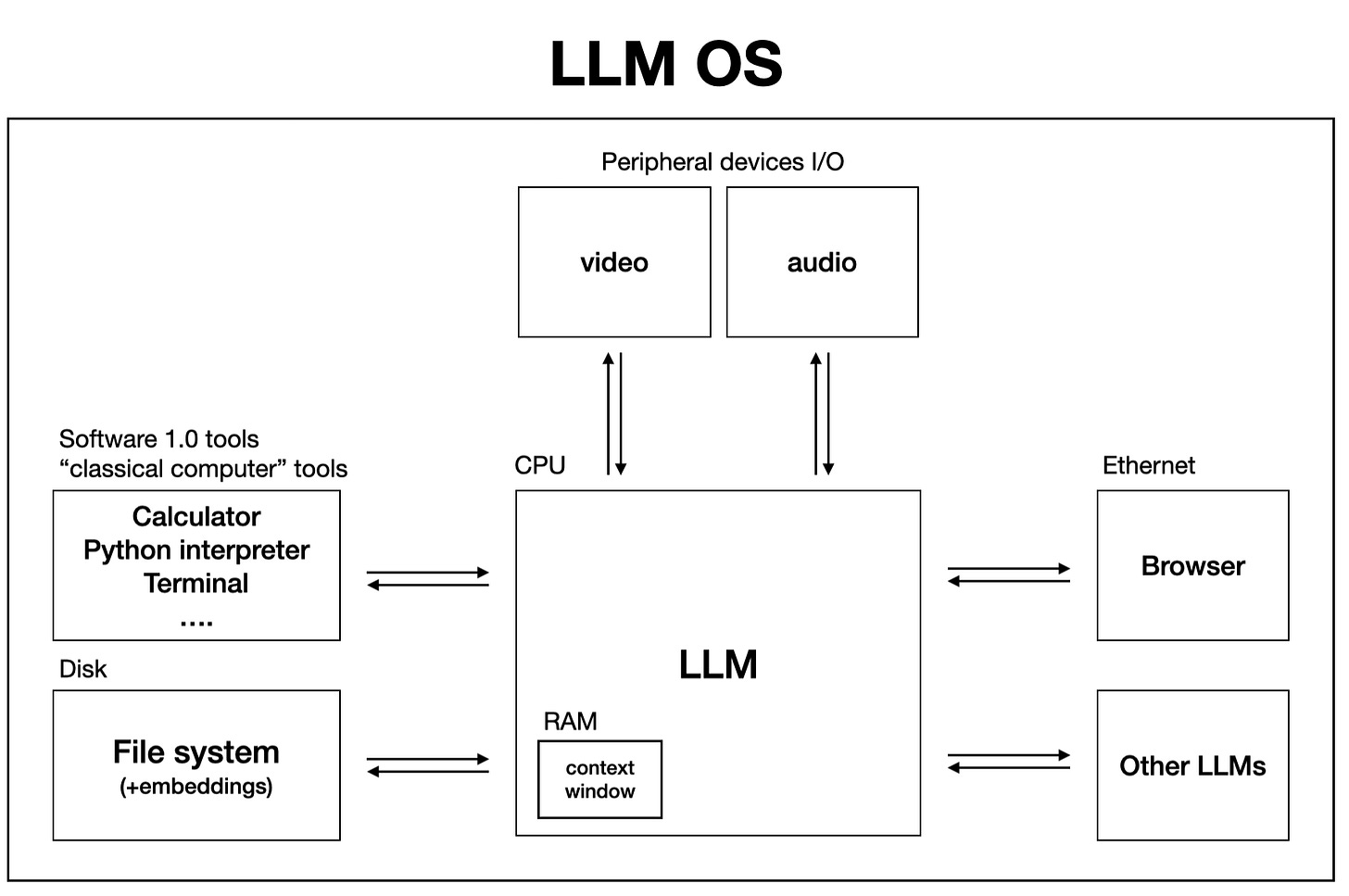 As I was working on Mr. Malone and writing this post, I couldn’t get out of my head this LLM OS image used by to describe his idea of Software 3.0.